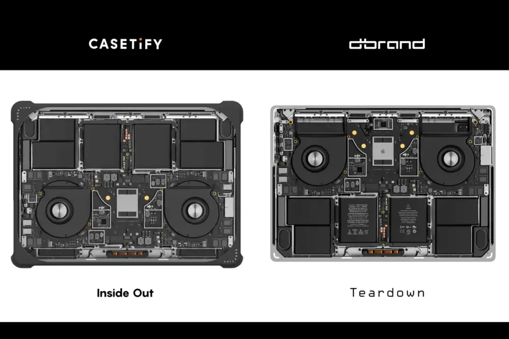 La línea 'Teardown' de Dbrand ha sido reconocida por su singularidad al mostrar el interior de smartphones y portátiles en sus fundas y skins. El trabajo meticuloso de edición y los divertidos huevos de Pascua de JerryRigEverything se convirtieron en el sello distintivo de estas creaciones. Sin embargo, Casetify lanzó recientemente su serie 'Inside Out', que, según Dbrand, no es más que una imitación descarada de sus diseños.