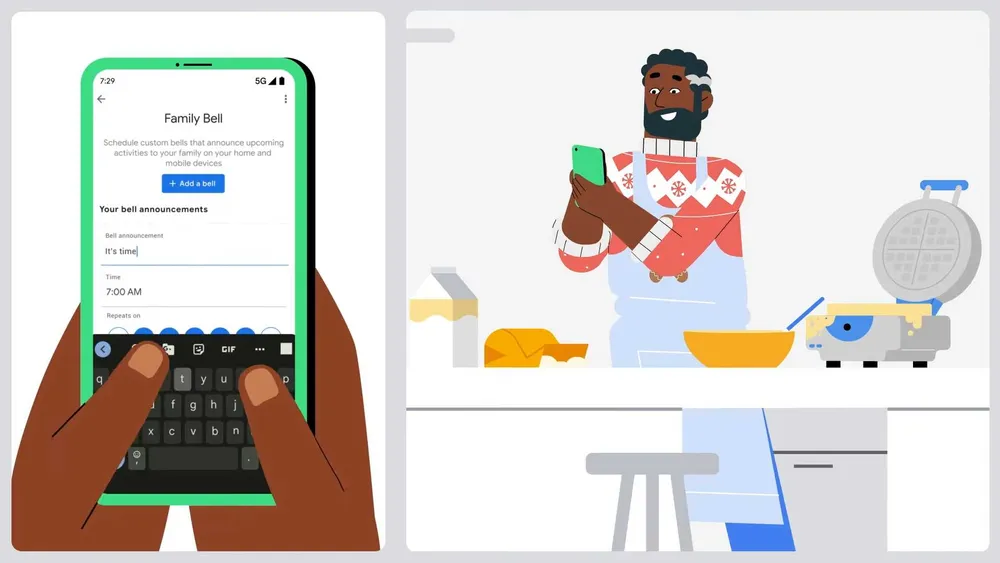Family Bell es una función añadida inicialmente a los altavoces inteligentes (Tanto con pantalla como solo altavoz) con el Asistente de Google. Sirve para poder sincronizar alarmas entre dispositivos como por ejemplo lanzar un evento de “Vamos a cenar” a una hora determinada.