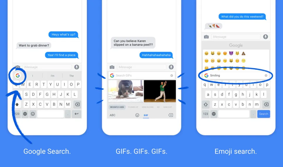 Para el que no lo conozca, Gboard es un teclado creado por Google para el sistema operativo de la manzana a principios de este año. El teclado, permite enviar imágenes y gifs a cualquier aplicación de una manera muy sencilla. Además, también permite hacer una búsqueda en Google desde cualquier lugar donde se pueda abrir el teclado.